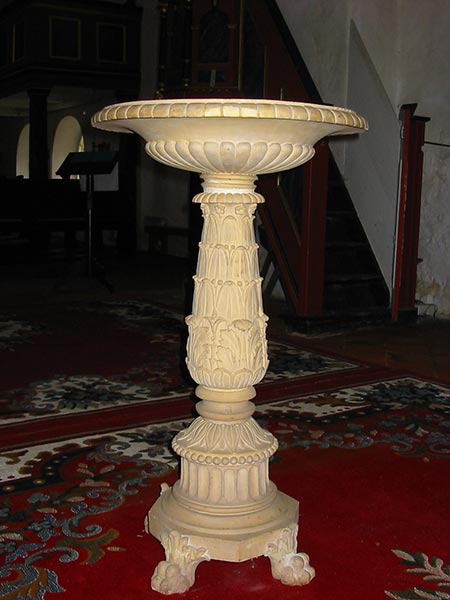 Der Innenraum der Kirche wurde 1936 erneuert. Die Kanzel mit Ecksäulen und die Emporen sind zur Zeit des Barock angefertigt, ebenso der Altar, dessen Gemälde allerdings verloren ist. Vor dem Altar steht der sehr schöne, zierliche Taufstein in klassizistischem Stil. Die Kirche verfügt über zwei Bronzeglocken, die wahrscheinlich auf das 13. und das 14. Jahrhundert zurückgehen. Gedenktafeln erinnern an die Gefallenen der Kriege gegen Österreich (1866), Frankreich (1870/71) und des Zweiten Weltkrieges.